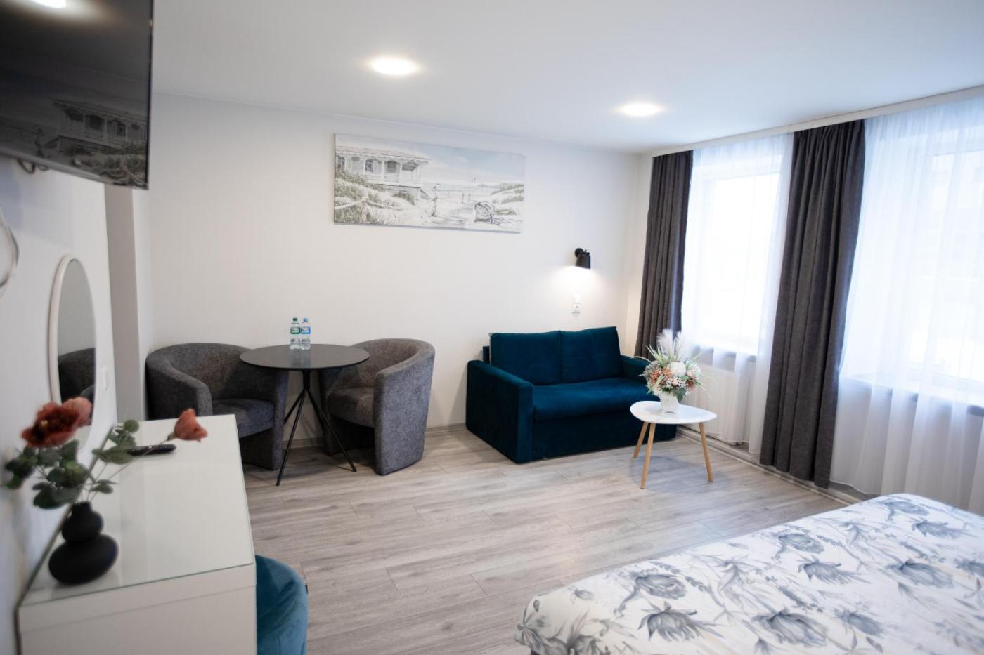 The rooms of the Dzukija feature a simple and classical interior design.have an electric kettle and a private bathroom with either a bathtub or a shower.
