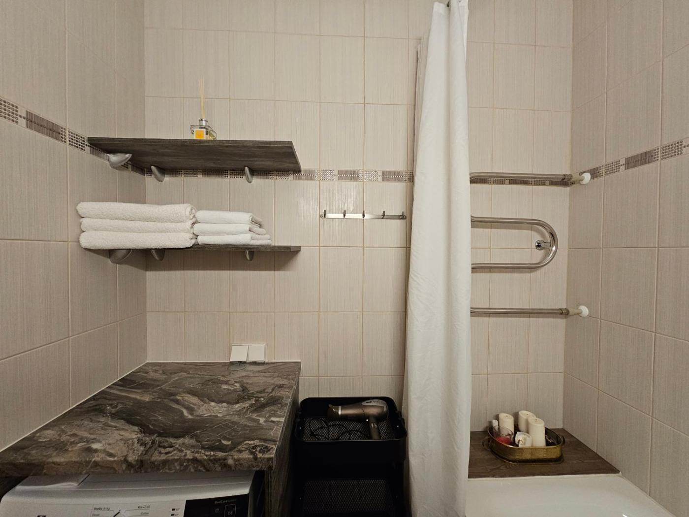 One-Bedroom Apartment. The air-conditioned apartment has 1 bedroom and 1 bathroom with a bath and a shower. The apartments kitchen, which features a refrigerator and a tea and coffee maker, is available for cooking and storing food. Boasting a balcony with city views, this apartment also features a washing machine and a flat-screen TV. The unit has 3 beds.