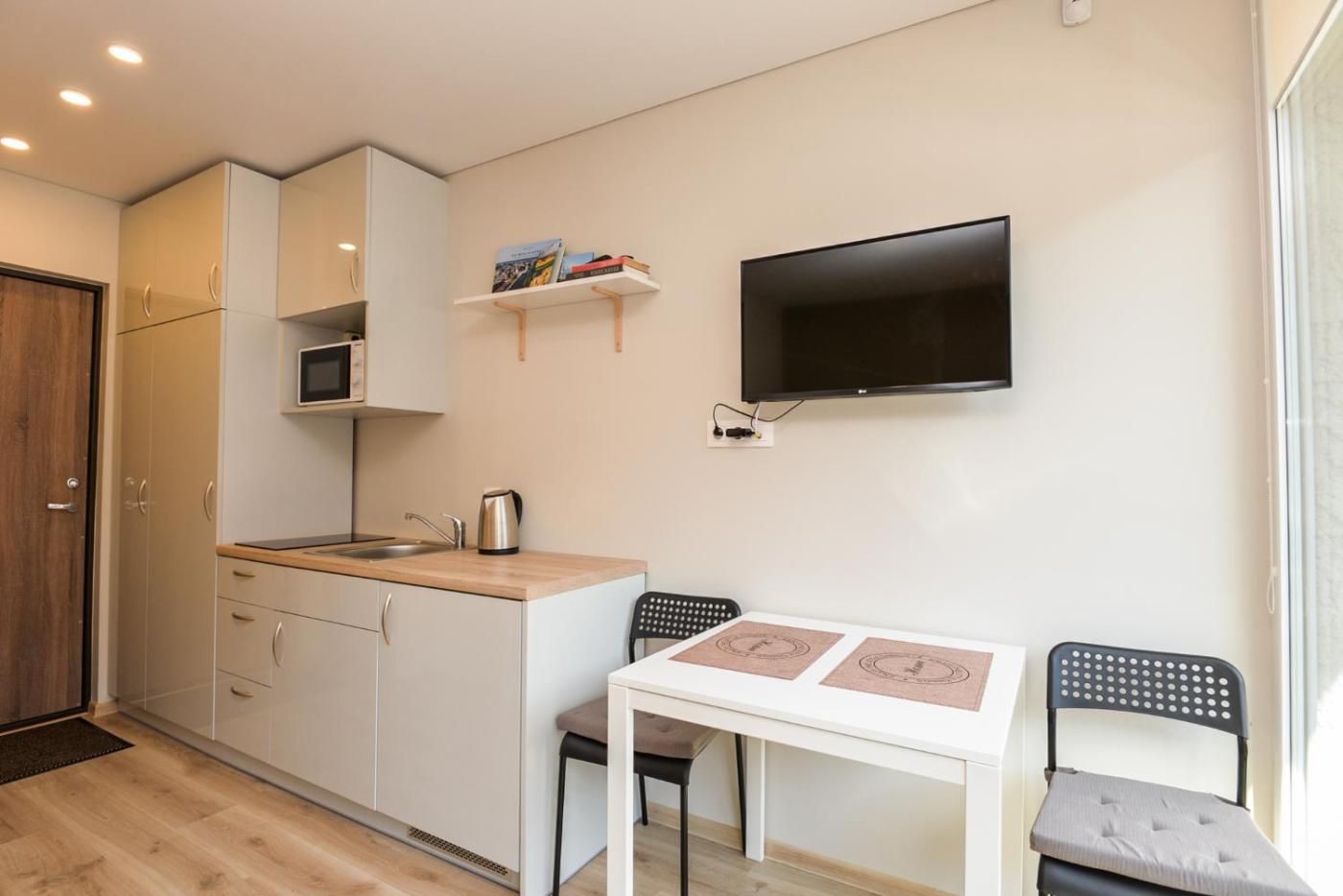 Studio with Balcony. Meals can be prepared in the well-fitted kitchenette, which has a stovetop, a refrigerator, kitchenware and a microwave. The studio offers a private entrance, soundproof walls, a terrace with a quiet street view as well as a private bathroom boasting a shower. The unit has 1 bed. ;