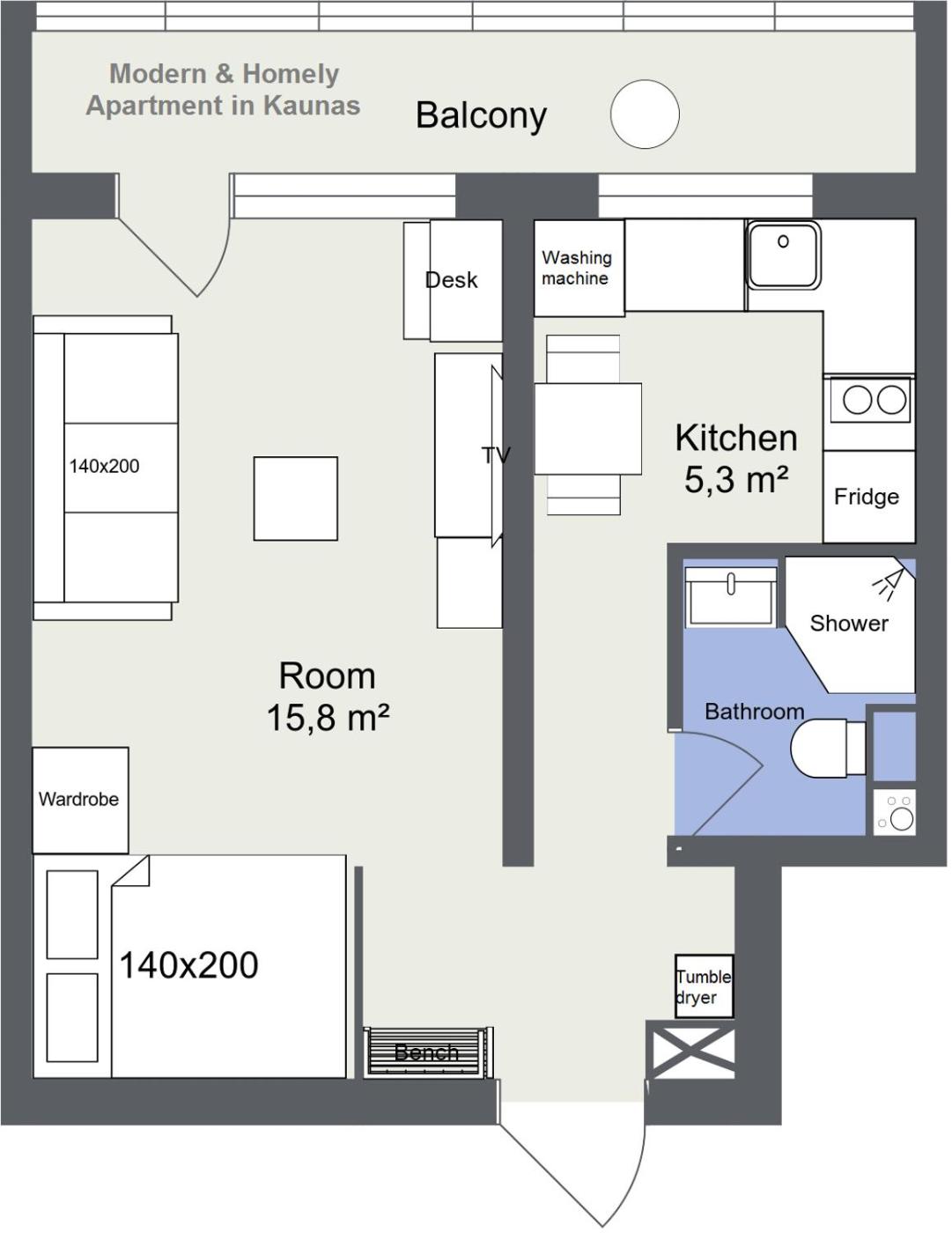 Apartment. The apartment has 1 bedroom and 1 bathroom with a shower and free toiletries. In the fully equipped kitchen, guests will find a stovetop, a refrigerator, kitchenware and an oven. This apartment features a washing machine, a tea and coffee maker, a flat-screen TV with streaming services and a balcony. The unit has 2 beds.
