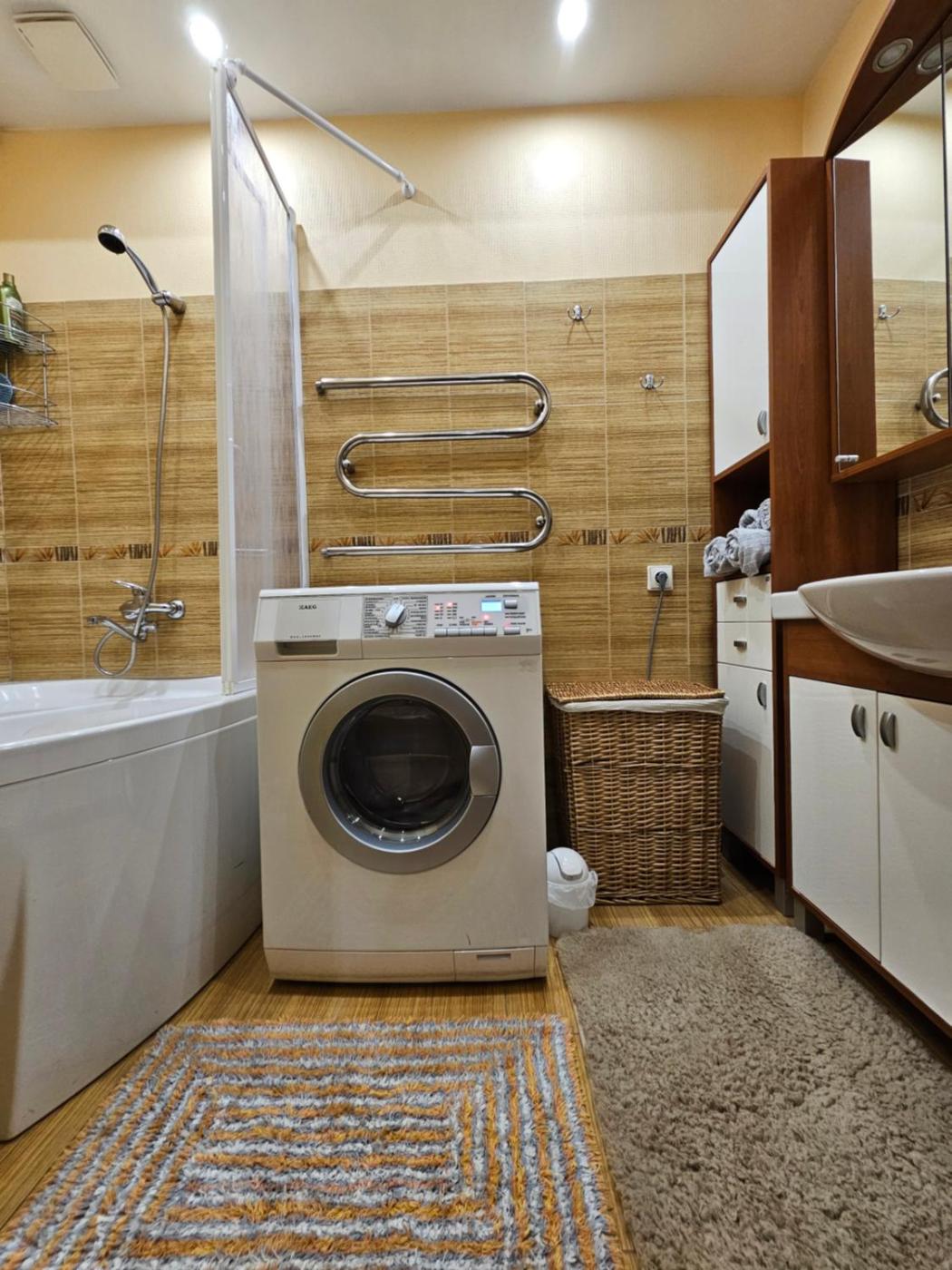 One-Bedroom Apartment. The hot tub is the standout feature of this apartment. Boasting a private entrance, this apartment comes with 1 living room, 1 separate bedroom and 1 bathroom with a bath and a shower. The well-fitted kitchen features a stovetop, a refrigerator, a dishwasher and kitchenware. This apartment has a washing machine, a tea and coffee maker, flat-screen TV with cable channels, as well as chocolate for guests. The unit has 2 beds.