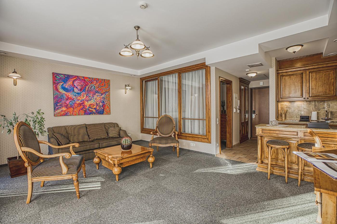 One-Bedroom Apartment. This apartment includes 1 living room, 1 separate bedroom and 1 bathroom with a shower and free toiletries. In the kitchen, guests will find a stovetop, a refrigerator and kitchenware. The air-conditioned apartment offers a flat-screen TV with streaming services, a washing machine, a tea and coffee maker, a seating area as well as city views. The unit has 1 bed.