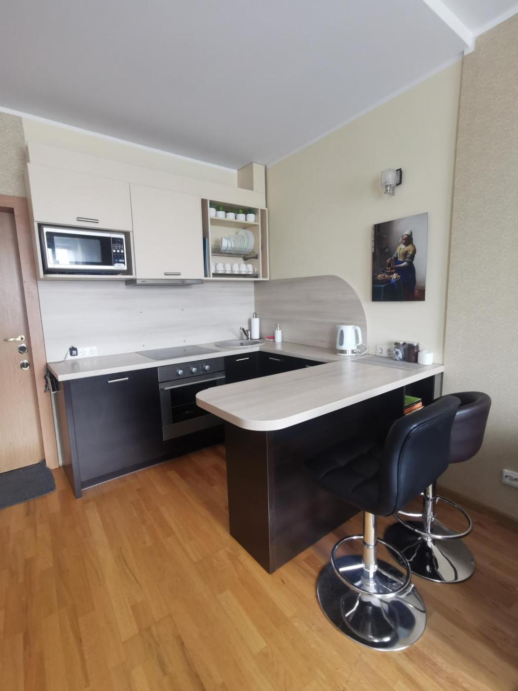 The 1-bedroom apartment is equipped with a living room with a flat-screen TV with satellite channels, a fully equipped kitchen with an oven and a microwave, and 1 bathroom with a hair dryer. Towels and bed linen are provided in the apartment. The accommodation is non-smoking.