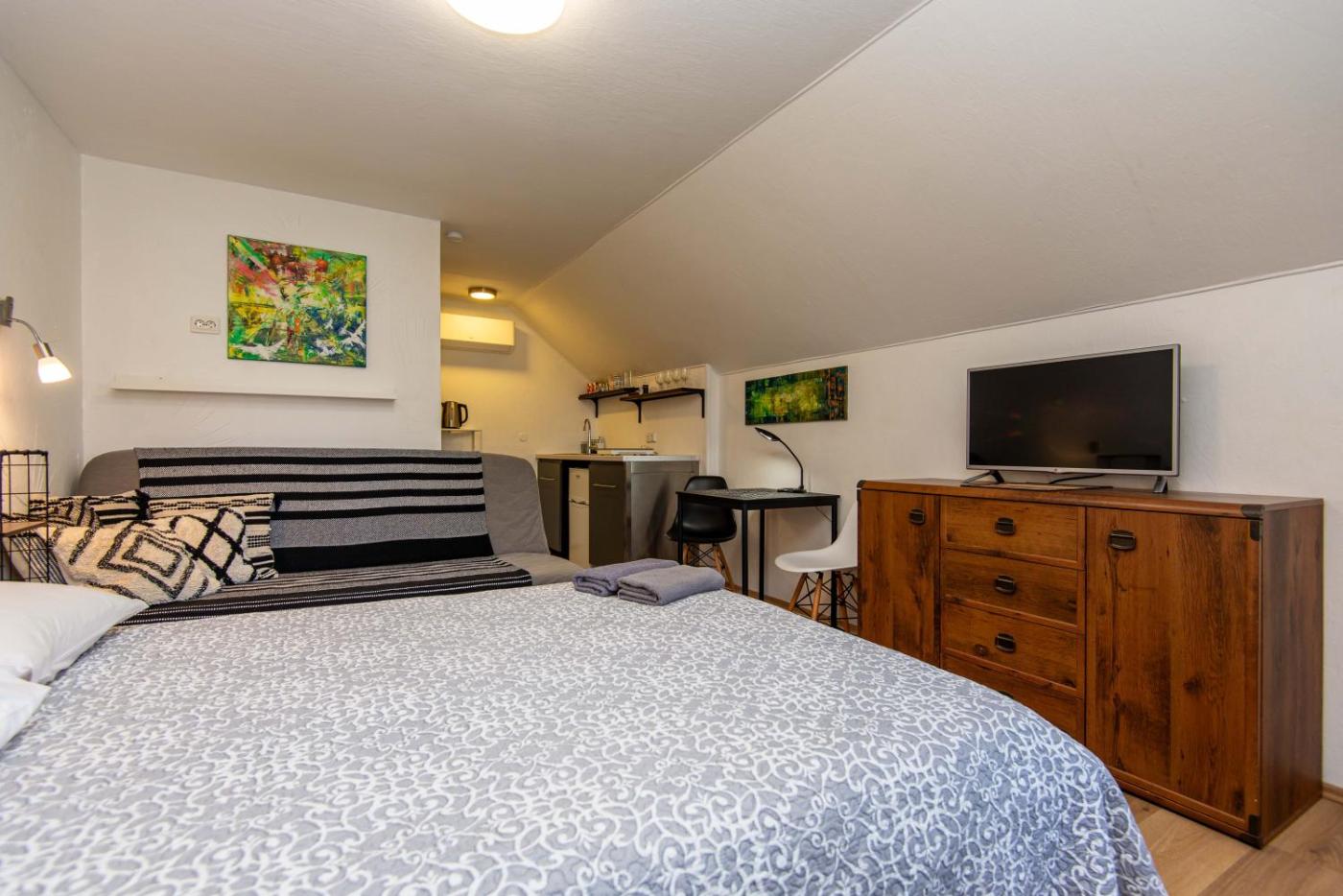 Studio Apartment. This apartment features a TV and a fully equipped kitchenette. The apartment is located on the ground floor. ;