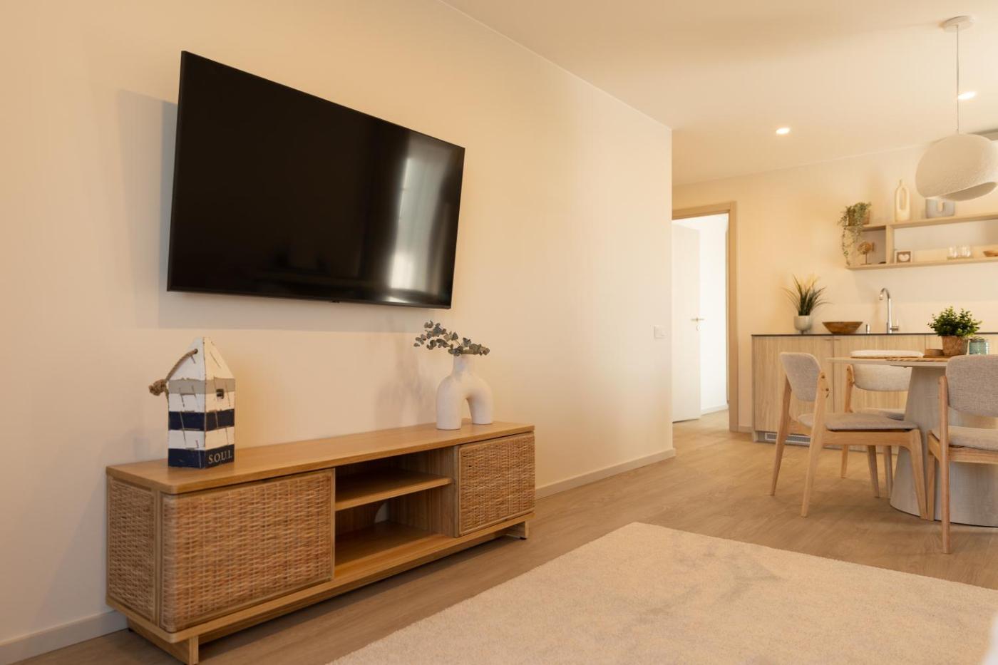 Two-Bedroom Apartment. This air-conditioned apartment features 1 living room, 2 separate bedrooms and 1 bathroom with a bath or a shower. The apartments kitchen is available for cooking and storing food. Boasting a terrace with sea views, this apartment also features a washing machine and a flat-screen TV. The unit has 3 beds.