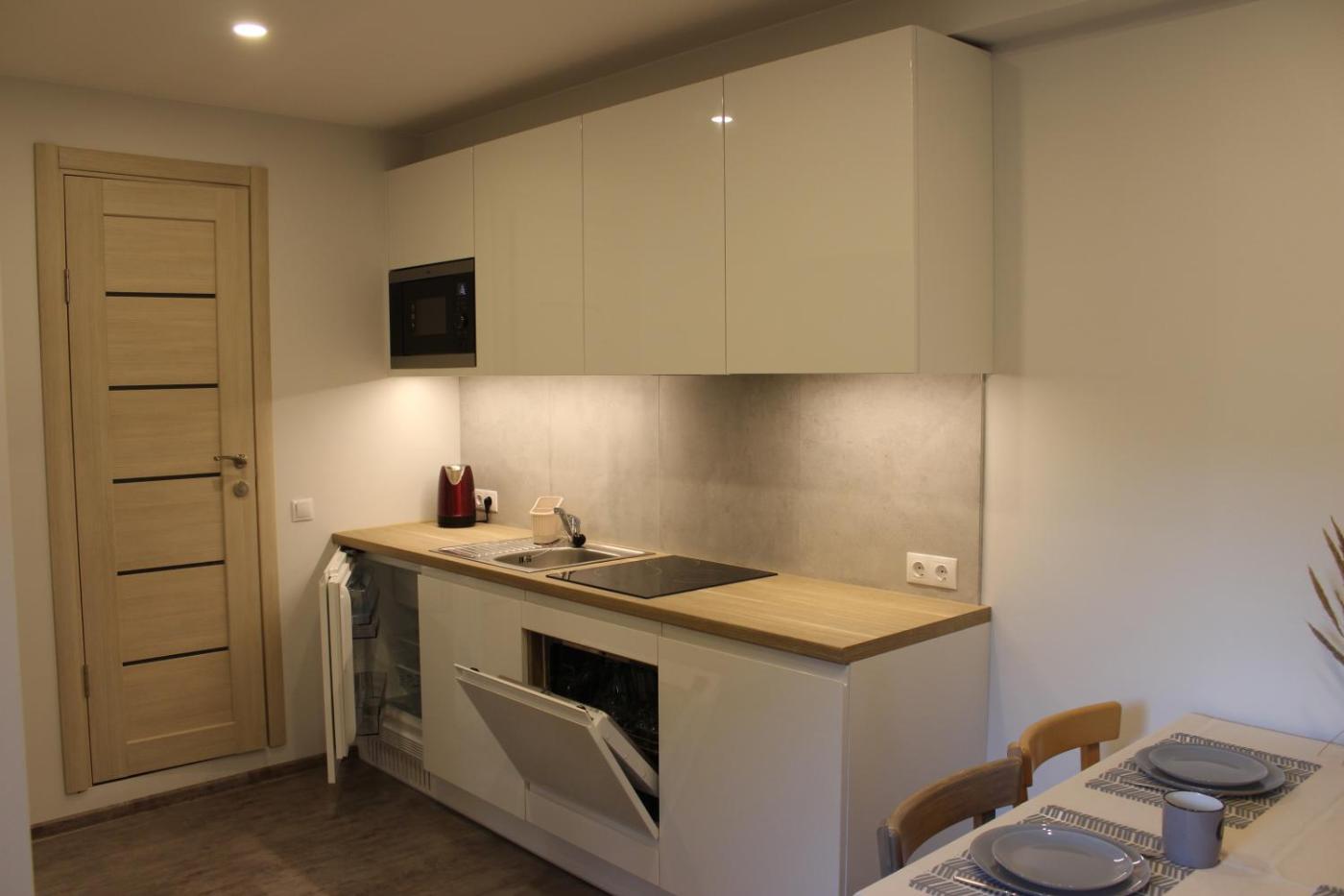 One-Bedroom Apartment. Featuring a private entrance, this apartment also comprises 1 bedroom, a seating area and 1 bathroom with a shower and a hairdryer. In the kitchen, guests will find a stovetop, a refrigerator, a dishwasher and kitchenware. The apartment provides a washing machine, a dining area, a wardrobe, an electric kettle and a flat-screen TV. The unit offers 2 beds.
