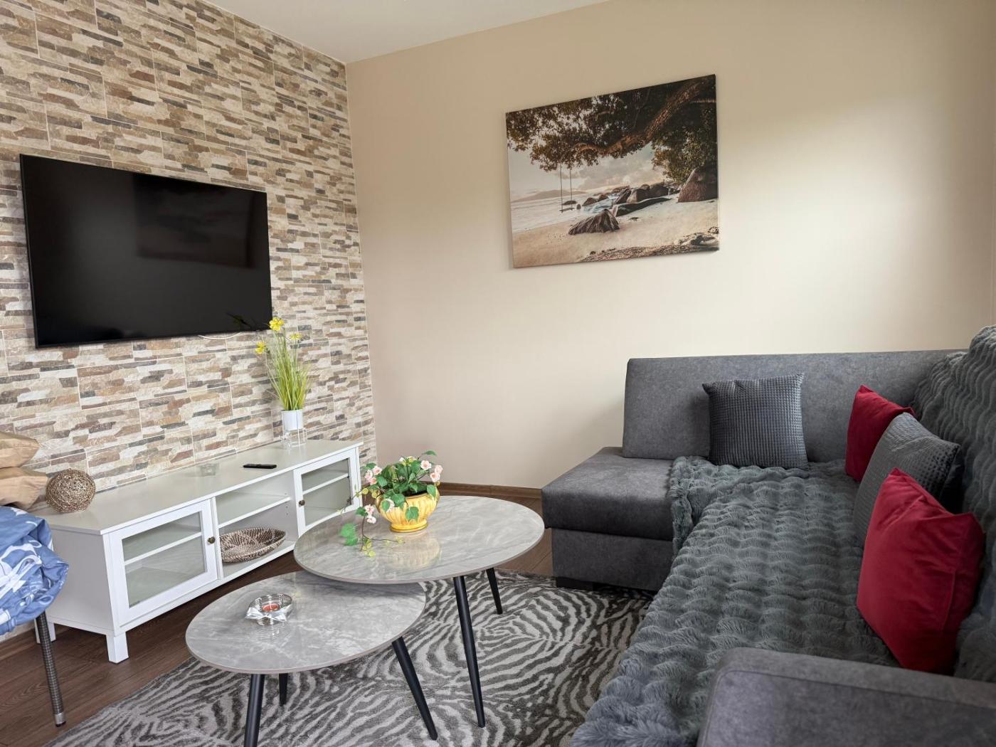 Two-Bedroom Apartment. Boasting 2 bedrooms and 2 bathrooms, this spacious apartment has a living room and terraceyou can relax. The apartments kitchen is available for cooking and storing food. Featuring a balcony, this apartment also offers a washing machine and a flat-screen TV. The unit offers 4 beds.