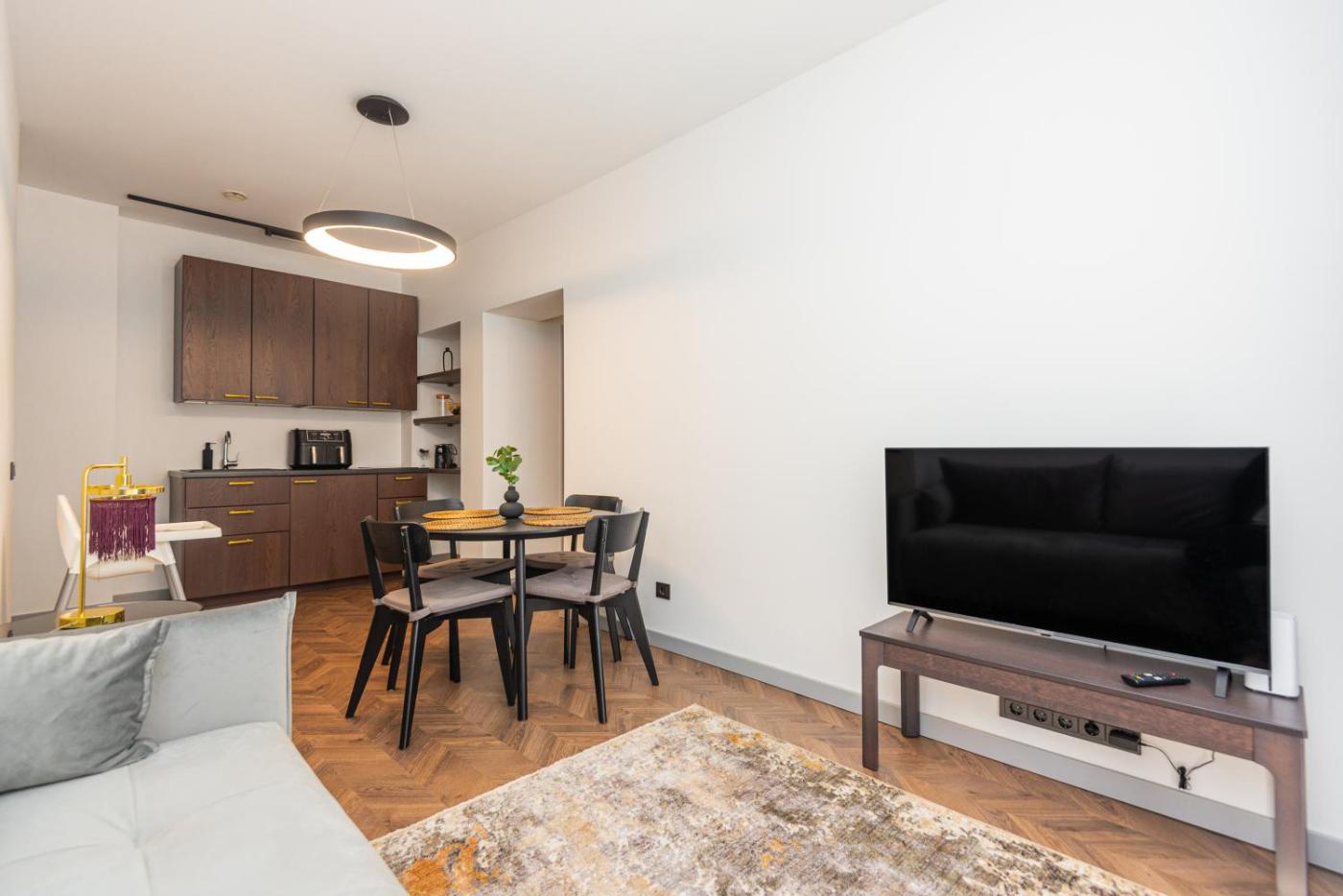 One-Bedroom Apartment. This apartment comprises 1 living room, 1 separate bedroom and 1 bathroom with a shower and a hairdryer. The fully equipped kitchen features a stovetop, a refrigerator, kitchenware and a microwave. Featuring a balcony, this apartment also provides a tea and coffee maker, a dining area and a flat-screen TV with streaming services. The unit offers 2 beds.