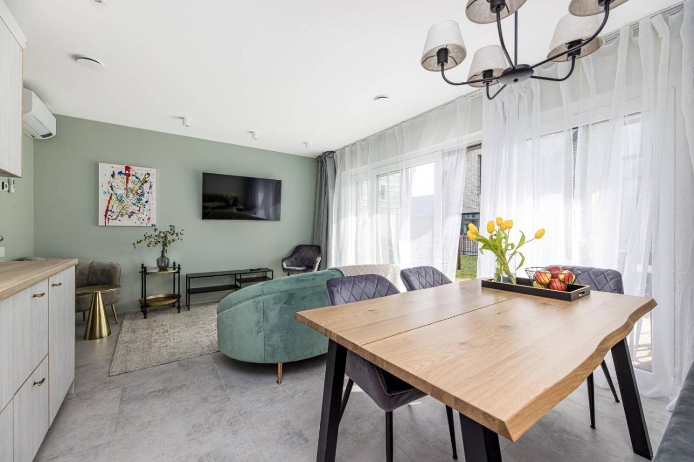 1.1 km from Vanagupe Beach, LAIKAS JŪRAI-Atostogų namas is a recently renovated propertyin Palanga and offers air-conditioned rooms with free WiFi and private parking. This beachfront property offers access to a terrace. The apartment features family rooms as well as facilities for disabled guests.