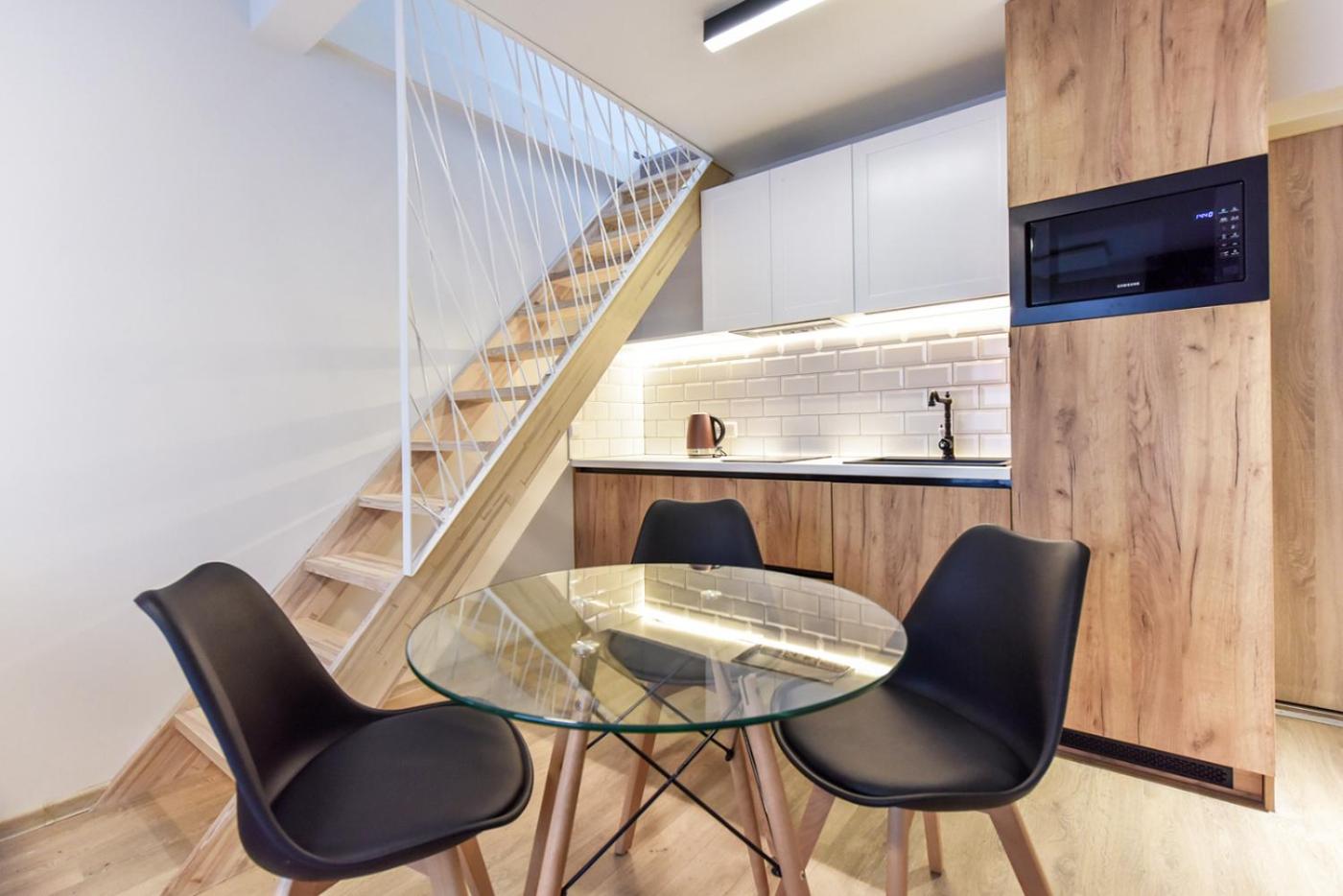 Two-Bedroom Apartment. Featuring a private entrance, this air-conditioned apartment consists of 1 living room, 2 separate bedrooms and 1 bathroom with a bath and a shower. The well-equipped kitchenette features a stovetop, a refrigerator, kitchenware and a microwave. Boasting a balcony with city views, this apartment also provides a washing machine and a flat-screen TV with cable channels. The unit offers 3 beds.