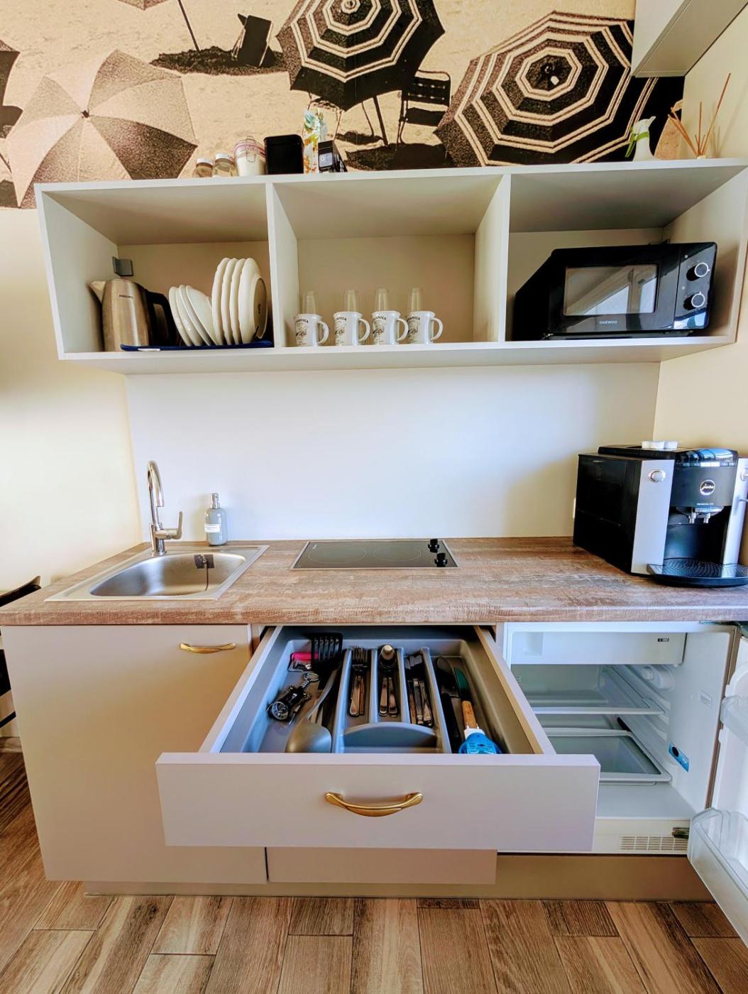 Studio Apartment. Boasting a private entrance, this air-conditioned apartment includes a kitchen, 1 bedroom and 1 bathroom with a walk-in shower and a hairdryer. Guests will find a stovetop, a refrigerator, kitchenware and a microwave in the kitchen. The apartment also features a barbecue. Featuring a terrace, this apartment also offers a washing machine, soundproof walls and a flat-screen TV. The unit has 2 beds. ;