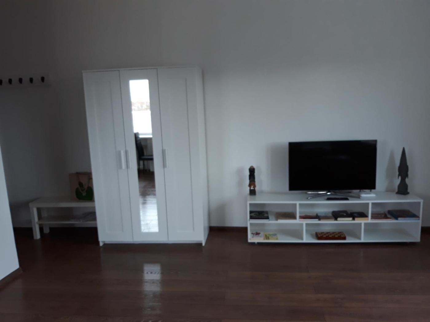 Studio Apartment. This apartment comprises 1 living room, 2 separate bedrooms and 1 bathroom with a shower and free toiletries. Guests will find a stovetop, a refrigerator and kitchenware in the kitchen. The apartment also provides guests with a barbecue. This apartment features a washing machine, flat-screen TV with cable channels, city views, as well as chocolate for guests. The unit offers 4 beds.