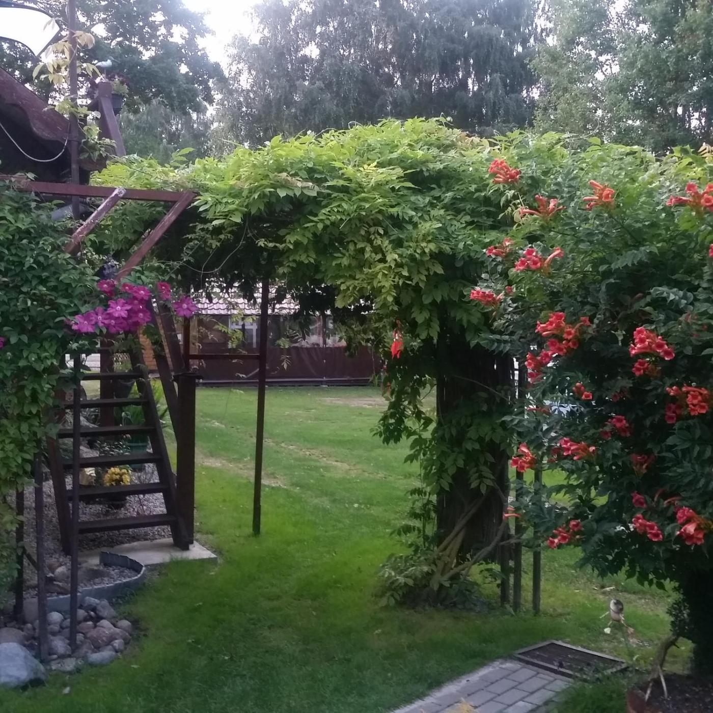 The country house features a barbecue and a garden.