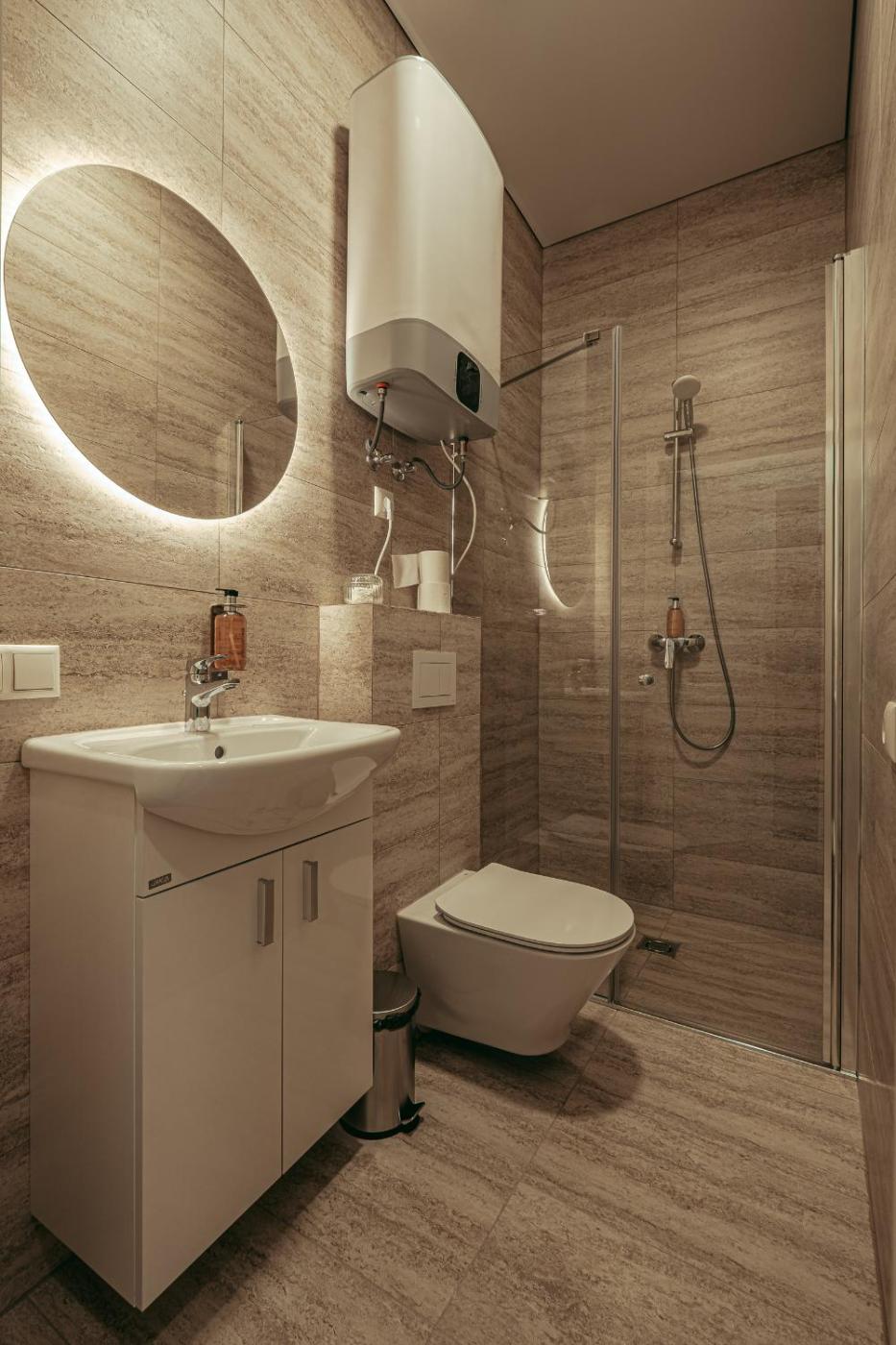 Studio Apartment. The apartment features 1 bedroom and 1 bathroom with a shower and free toiletries. Guests can make meals in the kitchen that is equipped with a stovetop, a refrigerator, a dishwasher and kitchenware. The apartment has parquet floors, a seating area with a flat-screen TV, a washing machine, a tea and coffee maker as well as city views. The unit offers 1 bed. ;