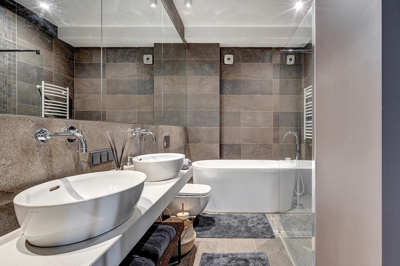 This modern and very spacious design apartment features air-conditioning, two bathrooms - one with a spa bath, and a spacious living room. There are 2 LED TVs, a BluRay Player and a CD Player. There is also a fully equipped kitchen and large dining table.